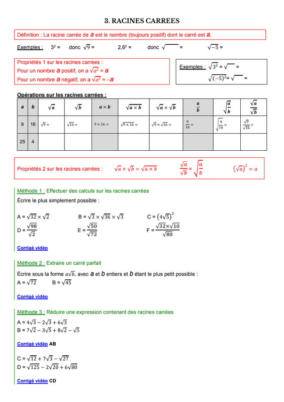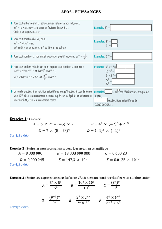 AP01 - LE COURS : Règles de calcul - Cinquième