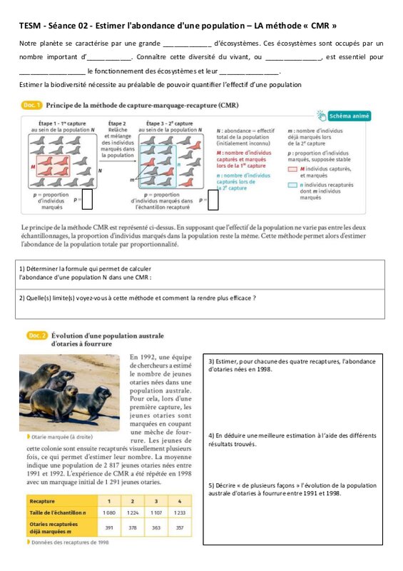 CMR - Capture, Marquage, Recapture ! (Enseignement Scientifique en Terminale)